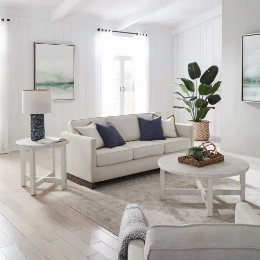 This collection expresses a simple essence with comfortable styling. A nice balance between Cottage and Farmhouse living the neutral palette of white and parchment brown blends beautifully with the textural elements of the finish. A clean look with graceful lines that also maintains a timeless, eclectic feel. Create your perfect getaway with this collection .