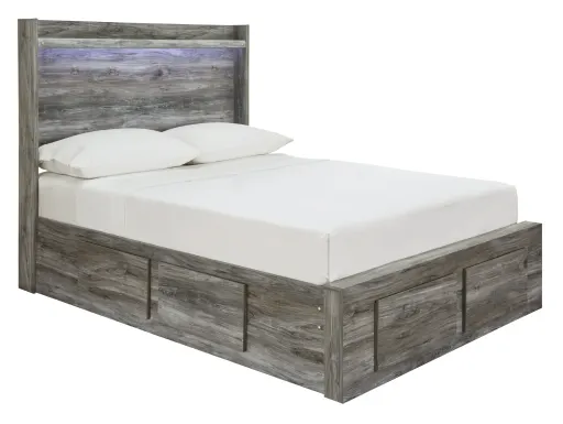 Rest in the casually cool style of this full panel storage bed. Its driftwood and smoky finish and cool LED lighting give this bed an easy-going vibe perfect for setting the scene of a relaxed getaway. Keeping everything neat and tidy, six smooth-gliding drawers provide plenty of underbed storage. Mattress available, sold separately.