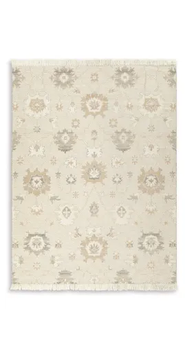 Bring modern life into balance with the rhythms and beauty of nature. This area rug has the vintage look of an heirloom. Blooming with graceful florals in neutral tones and surrounded by fringe edging, it adds style to any lounge space.