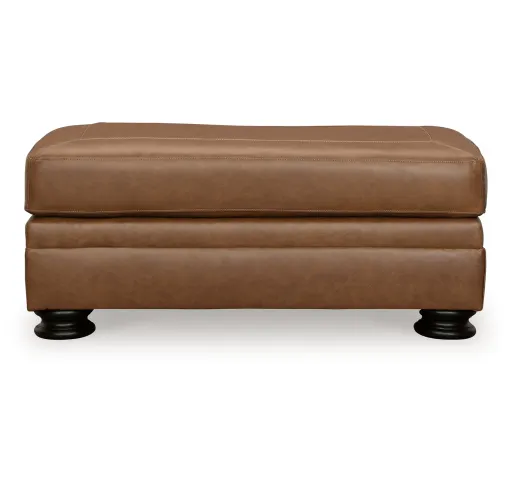 Merging traditional motifs with a modern hue, this ottoman ties your transitional seating area together. Turn legs support the comfortable cushion for a bit of extra flair. It’s approachable, yet luxurious. With this well-dressed footrest, everyday relaxation gets a distinctive upgrade.