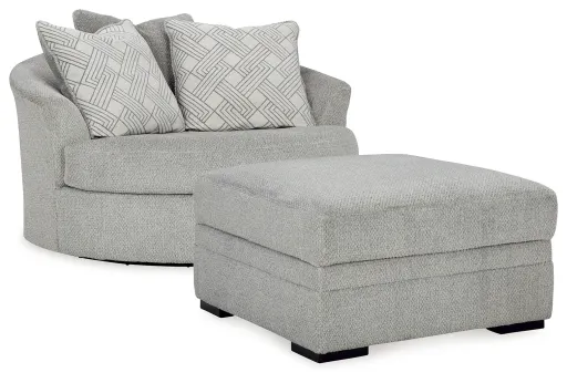 Don’t be limited by a lack of space. This oversized swivel accent chair with matching ottoman makes family movie nights and get-togethers with friends all the more cozy. With its 360-degree swivel, it’s easy to switch from watching TV to talking to guests. A trendy gray hue offers the contemporary style you crave. So sit back and relax—this functional piece is ready to indulge you with everyday comfort.