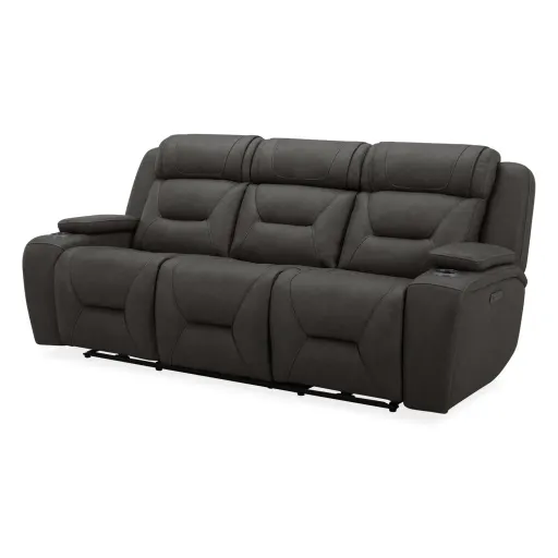 araceli ii charcoal grey vegan faux leather 86" sofa|araceli ii pewter grey fabric oversized armchair