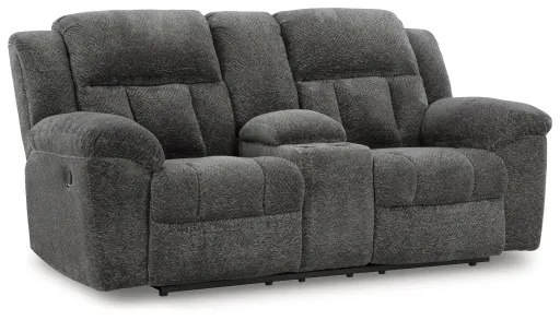 With its large-scale design, this extra-spacious reclining loveseat with console is a masterclass in accessible style. Plush, ultra-soft upholstery keeps everyone cozy as you lounge with family or guests. In a neutral hue, it seamlessly suits different aesthetics as your taste changes. Time to relax? The loveseat