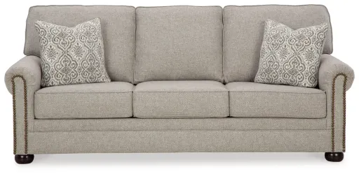 Inspired by the past but rooted firmly in the present, this sofa complements your transitional seating area. Its versatile upholstery is delightfully detailed for a subtle herringbone effect. Designer touches like decorative nailhead trim and bun legs add traditional character. With this sofa