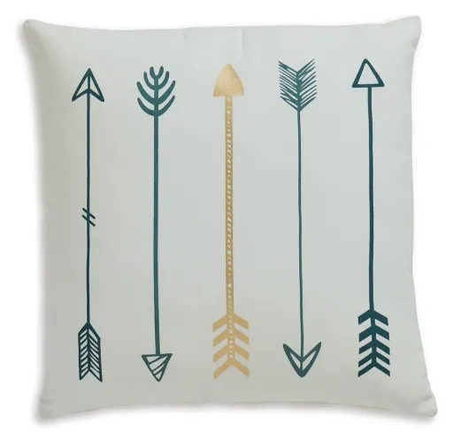 Add a distinctive piece of decor to your room with this accent pillow. Adorned with a pattern of arrows in teal, white and metallic goldtone, this striking print adds a splash of style to any decor. Featuring a cotton cover with knife edge construction and zipper closure, this pillow is perfect for use on a bed or chair to freshen up your living space in a beautiful way.