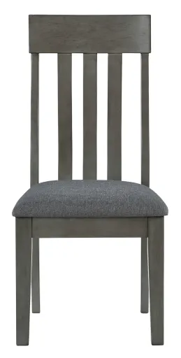 Cool and on-trend. This upholstered dining chair sports a two-tone gray look for a contemporary-yet-casual feel. The cushioned foam seat in a gray textural fabric pairs seamlessly with the antiqued gray finish, while the contoured comb-back design adds a dash of geometric flair. With this chic seat, it’s easy to dine in style.