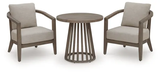 Turn an outdoor space into your own private oasis with this 3-piece cafe set. The essence of easy-breezy outdoor living, the brilliantly styled table and chairs are quality crafted with durable eucalyptus wood. Cushions are wrapped in high-performance Nuvella® fabric, so it