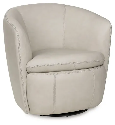 Experience the perfect blend of well-appointed comfort and stylish design with this swivel accent chair. Its supple leather and barrel back invite you to settle in and relax, while the sleek 360-degree swivel base keeps you engaged with conversations. Designed with functional luxury in mind, it’s the ideal fit for your contemporary lifestyle.