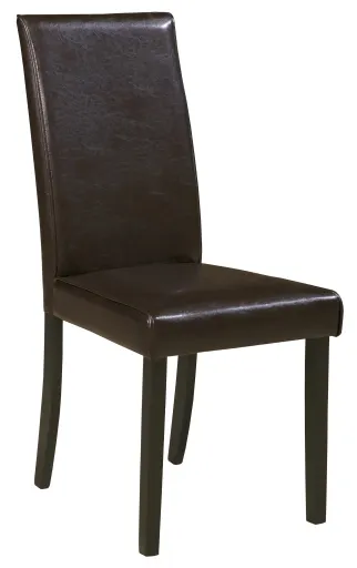 Sleek contemporary style makes this dining upholstered side chair a great choice for your home. Made with select veneers and hardwood solids in a dark brown finish, the upholstered seat features a brown color faux leather seat cover with accent stitching details.