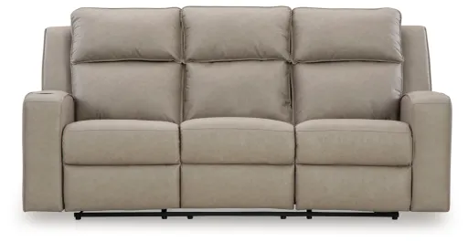 Indulge your lust for comfort and love for contemporary design with this reclining sofa. Made for easy everyday living, it’s upholstered in a heavyweight padded faux leather and accented with contrast jumbo stitching for fashion-forward flair. Sleek track arms elevate the look with a touch of modern sensibility. A drop-down table with dual cup holders and USB ports completes the experience.