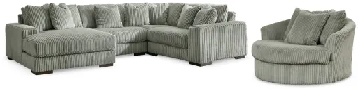 Plush and posh. Showcase your eye for on-trend texture with the statement-making cord upholstery of this sectional with chaise. Its stunningly soft fabric entices in a warm neutral hue, complementing contemporary color palettes. Sink into the cushions and plan to stay a while—this cozy living room centerpiece highlights your high-end approach to comfort and style. Matching chair included.