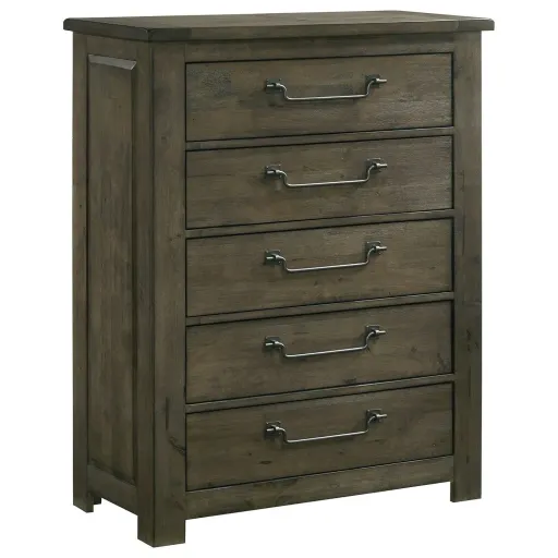 transitional 5-drawer chest in gray finish