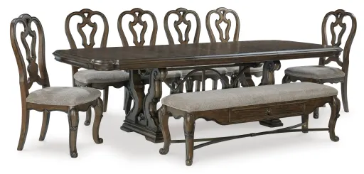 Shop for the Signature Design by Ashley Maylee 8-Piece Dining Set with Bench at Schewels Home - Your Virginia, West Virginia, North Carolina Furniture & Mattress Store