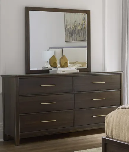 The Six Drawer Dresser combines contemporary design elements with traditional workmanship. Featuring a walnut-grain finish and a robust frame for enhanced longevity; this dresser provides both aesthetic appeal and reliable function for bedroom environments.