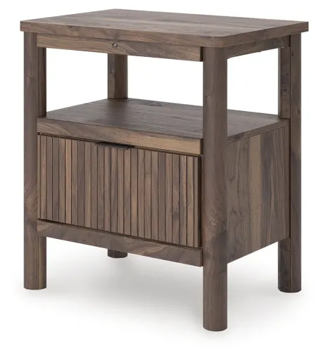 Crafted with both form and function in mind, this nightstand brings a dash of retro-cool character to your modern boho aesthetic. Reeded accents add an on-trend touch to its classic silhouette. Warmly welcoming with a rich brown finish, this piece pairs well with muted hues, earth tones and other neutrals alike. Need a charge? Handy USB ports keep phones, e-readers and tablets charged while you scroll before bed. What a refined take on easygoing style.
