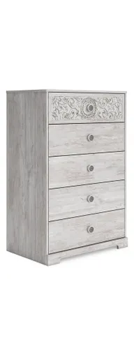The Paxberry 5-Drawer Chest from Signature Design by Ashley is a stylish and functional addition to any bedroom. It features a sleek design with ample storage space for your clothing and accessories. The chest is crafted from durable materials and finished in a rich, warm tone that complements a variety of decor styles. With five spacious drawers, it offers plenty of room to keep your belongings organized and easily accessible. This chest is a perfect blend of form and function, making it a great choice for updating your bedroom.