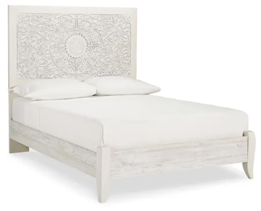 Your trendsetting mini-me can live out her elegant bohemian dreams with this full bed. Exquisite carved medallion pattern is a testament to true style. Charming whitewashed finish sets a foundation for bedding bursting with color. Headboard legs have four height options to grow with your child. Mattress and foundation/box spring available, sold separately.