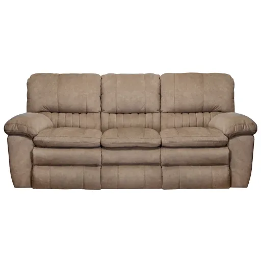 Add an element of comfort to your space that no one will be able to resist with this reclining sofa. This piece features power, lay flat recline so you can relax with the mere touch of a button. Style elements are casual with plush cushions on the headrests, arms, seats and footrests.