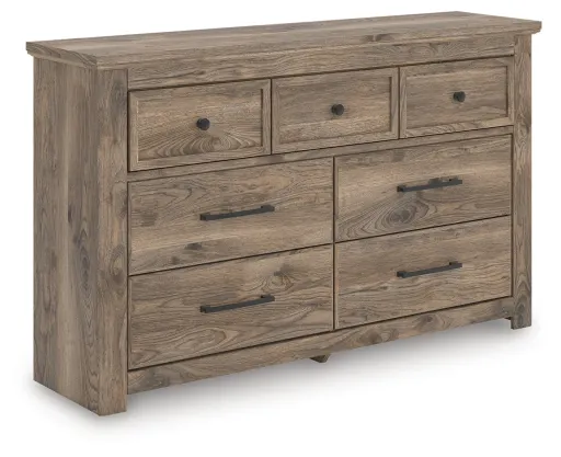 Classically chic. This dresser marries traditional design with modern accents. Its deep brown finish recalls the authentic touch of hickory grain for a rich look and feel. Assorted drawers neatly store your essentials in charming fashion. Sincere in its styling, this piece sets the scene for a warm, welcoming vibe in your bedroom.