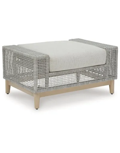 This ottoman invites your casual contemporary style outdoors. With its resin wicker in a chic neutral hue, it expertly marries refined design with durability. Breezy summer mornings and cold winter nights are made all the more comfortable with high-performance Nuvella+ fabric covering the cushion.