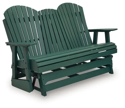 Drift away from everyday worries and into outdoor bliss with this glider loveseat. Dressed in a refreshing green hue, the Adirondack-inspired design has a classic feel. It weathers sunny summer days and cozy winter nights with durable MEGA-TUFF® HDPE material. A drop-down console with integrated cup holders keeps refreshments and snacks within easy reach. With the console snapped into the back, this loveseat has even more room for enjoying lazy days in the shade.