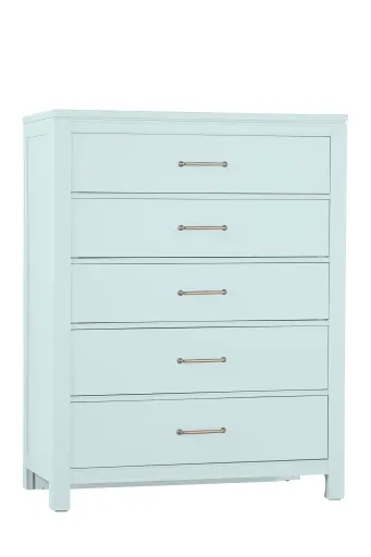 5 drawer chest features a modern reveal beneath the top and classic beaded rails; blending contemporary and traditional design.