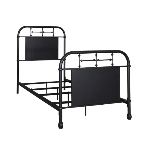 Highlighting vintage design, this metal bed adds an industrial centerpiece to your bedroom setting. Featuring a metal tube headboard and footboard each showcasing one large panel, the bed displays turned spindles for enhanced style. Unique and well-crafted, this bed is a must for your industrial home setting.