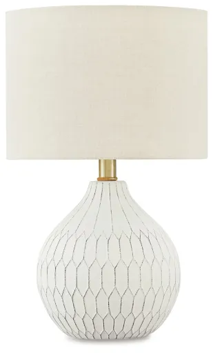 Fresh and light, the dimensional design of this delightful ceramic table lamp borrows from a retro theme to update a transitional space. Made of ceramic with an antiqued white finish, this accent lamp infuses personality into any setting. Add it to a console or end table and bring out the bright in any decor.