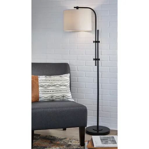 Sleek and sculptural, the Baronvale Floor Lamp brings modern industrial flair to your space. Crafted from metal with a drum-style fabric shade, brass-tone finish, and adjustable arm, it offers directional lighting perfect for reading or ambiance. Compatible with type A bulbs and equipped with a convenient on/off switch.