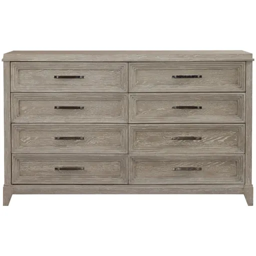 The Belmar Contemporary 8-Drawer Dresser matches contemporary shapes, bold, natural colors, and a high degree of functionality. With eight generous drawers for quality storage and a cedar-lined bottom drawer on each side to protect your most delicate items, you'll never want modern storage again. This is a solidly constructed piece of bedroom furniture with a wooden frame, metal drawer glides, and a durable exterior finish. The style elements of this piece include split heart oak veneers and nickel custom bar pulls. The natural aroma of the cedar-lined drawers will have you standing next to this dresser all day long. Order yours today from Slumberland.