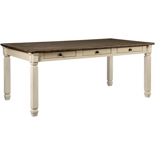 Handsome, practical and functional are the name of the game with this dining table. The two-tone textural finish of an antique white base and weather oak top gives a plank effect that doubles its charm. It also boasts six drawers - three on each side - for napkins, placemats and other items.