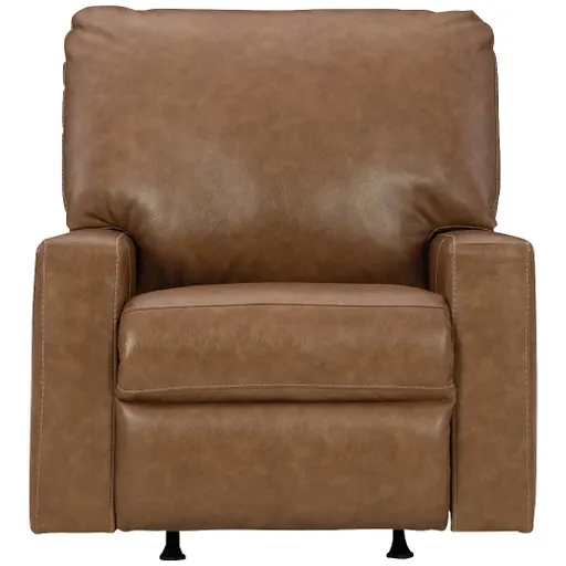 The Bolsena Rocker Recliner takes clean, refined lines that take contemporary design to a new level. It uses 100% top grain leather to covers areas such as back, seats, and arm cushions, with matched faux leather upholstery everywhere else. The natural variations in leather combined with a two-tone effect that enhances the depth of color for a uniquely rich appeal. Few recliners demand attention like these.
