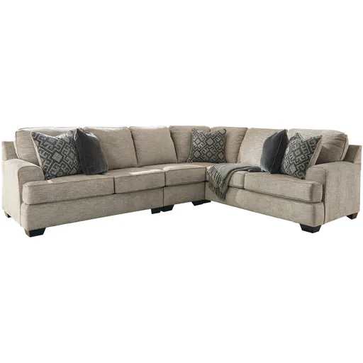 Are you looking for clean and contemporary or cozy modern farmhouse? Good, because the Bovarian 3-Piece Left Sectional is a great fit. Its stone-tone neutral upholstery is nothing but stylish, and its striking good looks merge beautifully with ultimate comfort. Plus, it includes five soft, polyfilled accent pillows.