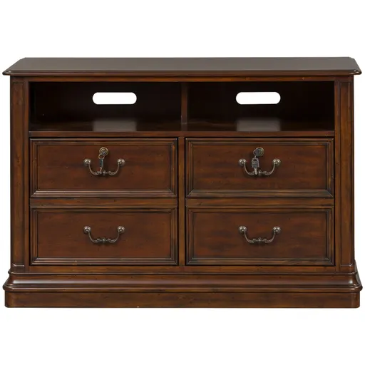The Brayton Manor Media Lateral File adds style and space to your home office. Finished in a rich cognac color with antique brass bail and knob drawers, you will love the way it looks.