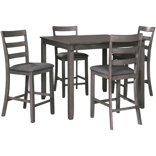 Looking for a dining set for a small space? Even if not, consider the Bridson 5 Piece Counter Dining Set. The square table with tapered legs boasts a rich gray/silver color that is soothing and stylish. The four stools have a ladderback and cushioned seat covers for extra comfort. You will want to pull up a chair and stay a while.