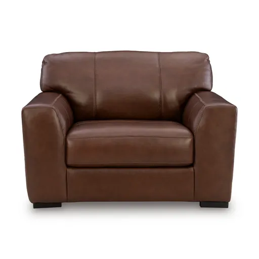 Effortlessly stylish, indulgently comfortable. This oversized chair encourages everyday relaxation with invitingly plush, extra-spacious cushions. It embodies affordable luxury, pairing the sleek appeal of top grain leather in the seating area with expertly matched faux leather on the sides and back. Suiting spaces from casual to contemporary, the chair's universal appeal makes staging your space nearly effortless.