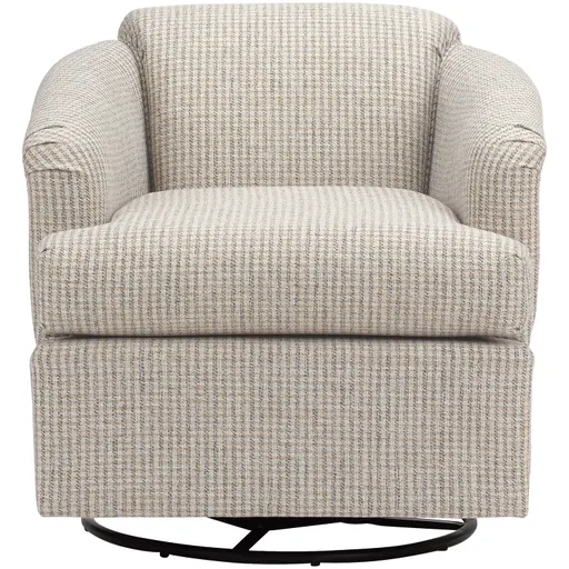 The Cass swivel glider chair is an accent chair with a difference. It has 360-degree swivel action, so you can easily turn to chat with someone next to you, reach over to the coffee table, or get a better view of the TV. Smooth, relaxing gliding motion adds to the soothing comfort. And the simple, club-barrel inspired styling fits beautifully into the contemporary or transitional home. This swivel glider chair has a solid hardwood frame with glued and screwed corner blocks, and sinuous wire in the seating area.
