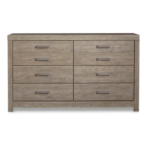 The Culverbach dresser has a casual, take-it-easy attitude that’s just right for the bedroom. It mimics the look of driftwood—nicely weathered and gently aged—but it’s really made of engineered wood. Matching wooden drawer pulls complement the simple lines, appropriate for the contemporary or transitional décor. This 6 drawer dresser features metal drawer glides for smooth operation, and linen-look linings. A safety tip over restraint is included. (Mirror sold separately.)