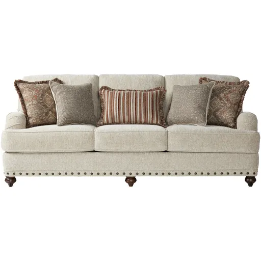 The Dolley Sofa is a signature piece in the Hughes Furniture living room collection. With three full seats, wooden legs, and nailhead trim, the Dolley Sofa would make a fantastic addition to any living room. The simple, yet elegant furniture design makes this a good fit for many different styles, from traditional to modern. If you've searched through an array of sofas, you owe it to yourself to try this in person at your local Slumberland. Pair it with other pieces from the Dolley collection or with other options of your choice. Buy your Dolley Sofa at Slumberland today.