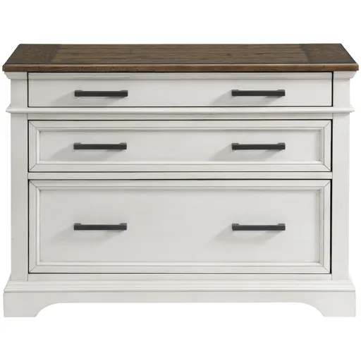 Drake Home Office offers a classic old world style, all case pieces have rustic oak plank board tops. This two-toned finish combines a relaxed antiqued white finish with warm rustic oak patina. Solidly constructed and designed to function the way we work today