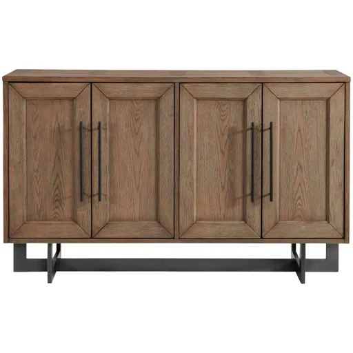 The Eden Dining Collection features an oak veneer and select hardwood construction, with a beautiful wire brushed urban rustic "Dune" finish. This unique industrial dining collection offers a modern style, designed for ultimate comfort. A self-storing leaf and cable driven metal slides provide optimum functionality for day to day use.