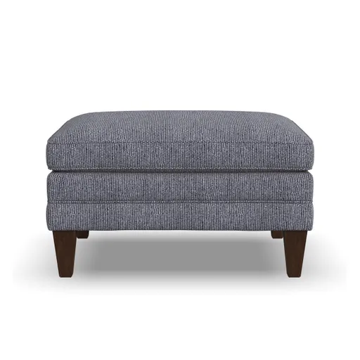 Designed to complement the Eleanora collection's graceful silhouette, this ottoman offers both elegance and ease. Its tailored, welt-trimmed cushion and dark brown tapered legs invite you to rest your feet or set a tray—bringing comfort and sophistication to any setting.