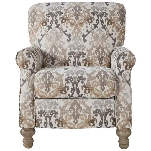 The Farlow recliner looks like a regular accent chair, but it's really a push-back recliner with three reclining positions. Designed to complement the rest of the Farlow collection, the tapestry print design is done in easy-to-match neutrals. Styled with roll arms and turned wooden feet, this recliner chair is a great addition to your traditional or transitional home. Farlow has a hardwood frame and environmentally friendly CertiPUR foam cushions.