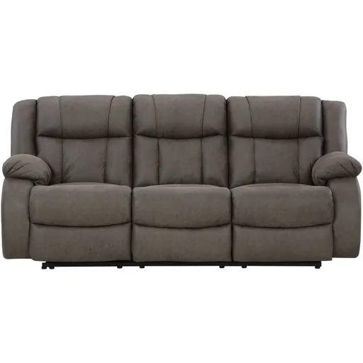 The First Base Reclining Sofa is a home run! Whether you’re watching the game at home or just enjoying a relaxing snooze, you can do so in comfort thanks to the high-quality foam cushions and pull tab easy recline motion. Faux leather upholstery and stitched detailing makes this sofa a living room All Star.
