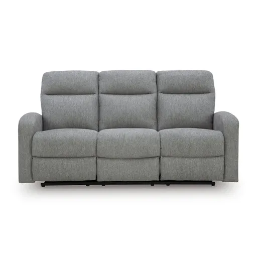 Easy everyday relaxation that seamlessly adapts to your living room aesthetic. The classic design and easygoing neutral hue of the Gauntlet Reclining Sofa takes you back to the basics with its simple stylish comfort. Go from seated to stretched out with effortless pull tab reclining.