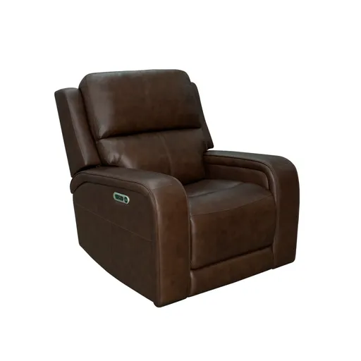 Sleek and tailored, the Hayley Power Recliner offers personalized comfort with power reclining and an adjustable headrest. Wrapped in a rich burnt umber leather, it’s as stylish as it is supportive. The compact footprint, USB charging, and Flexsteel’s patented spring system make it perfect for small living areas or quiet corners.