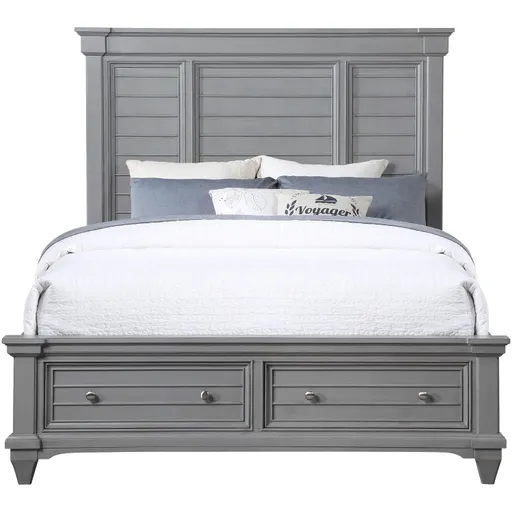 The bedroom is our sanctuary, the space where we relax at the end of the day and rest up for the next. Bring drama and practical functionality to your bedroom with the Hilton Head Storage Bed. Two built-in drawers in the footboard offer plenty of storage for blankets, extra linens or anything else you need to stow away. The bead moulding and coastal-inspired shutters on this classic panel bed give it fresh yet vintage appeal. These details make it easy to fit into transitional, farmhouse, shabby chic or boho interior designs. The hardware features a brushed nickel finish that contrasts nicely with the bed's rustic style.
