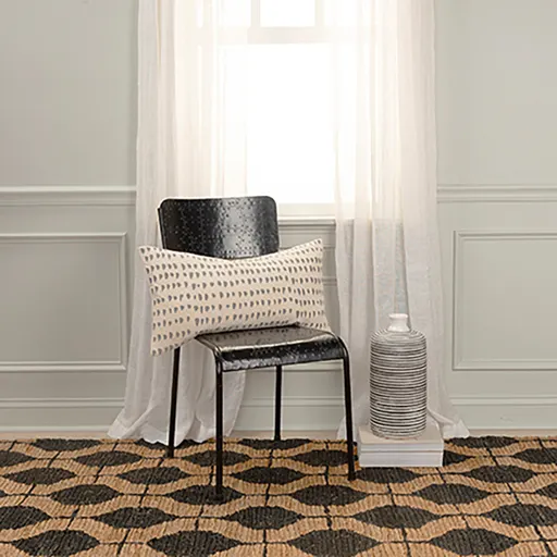Knife edged, this woven pillow with hand guided machine embroidery creates a fun novel approach to a skin patterned accent. The weave of the pillow is slubbed creating a slight texture. This pillow is designed to be a long lasting staple to any styled decor. it will be a beautiful addition to your bedroom or the best lumbar support in your favorite chair. The back of the pillow is a solid back with a hidden zippered closure for ease of fill and cleaning.