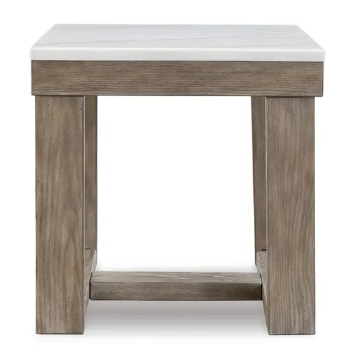 This square end table is simple in design but big on style. Finished with a trend-right grayish brown wood tone, its bold, blocky profile and natural marble top are timeless classic choices that work so well with a variety of settings. Adding to its beauty, the marble top's color variations, fissures, mineral deposits and veining are naturally formed and are not defects.