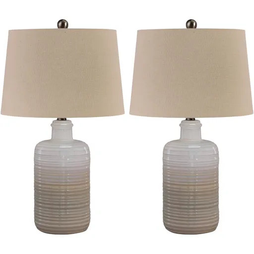 This set of 2 Marnina ceramic table lamps blends beautifully with so many decors, so many color schemes. Made of glazed, textured ceramic, these lamps have a casual elegance that’s appropriate in any room. And with a 3-way switch, they’re perfect for anything from mood to reading light. Ceramic with drum shade. Uses a max. 100-watt bulb (23-watt CFL).